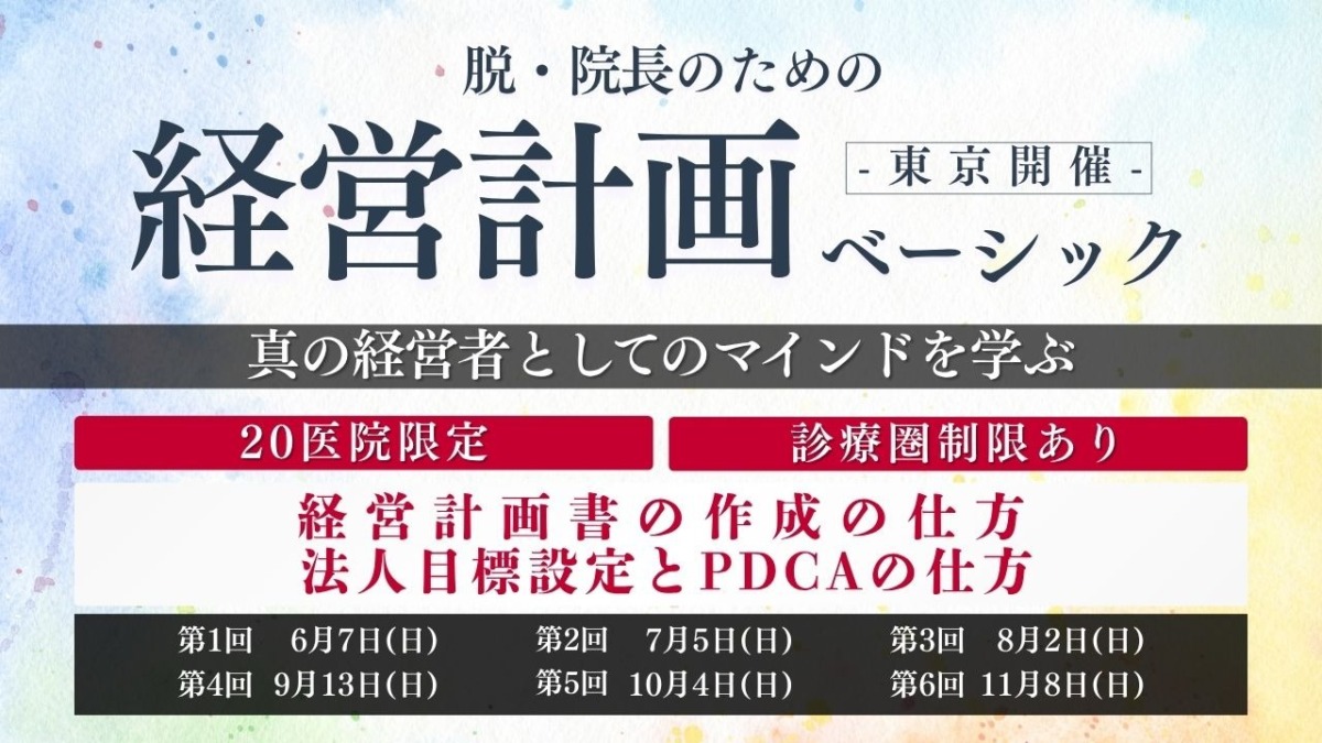 【申込受付中】第0期 脱・院長のための「経営計画ベーシック-東京-」開催のお知らせ