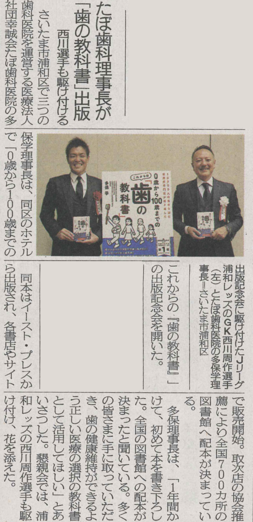 埼玉新聞に書籍『0歳から100歳までの これからの「歯の教科書」』の出版記念会の様子が掲載されました。